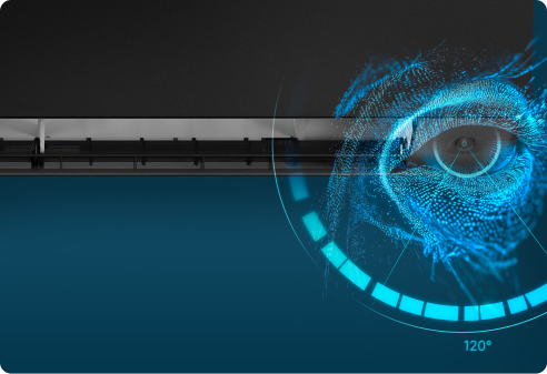 Благодаря двум встроенным модулям датчик присутствия контролирует одновременно две зоны под углом до 120° и на расстоянии до 6 метров. Датчик автоматически анализирует положение людей в помещении, а затем направляет поток воздуха, следуя за человеком или избегая его, в зависимости от настроек.